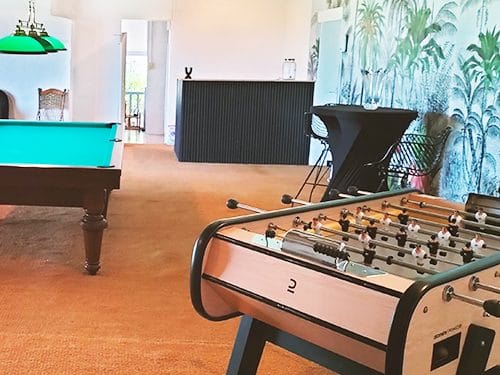 - Une grande salle de jeux tout confort (180m2) avec cheminées et divers coins détente